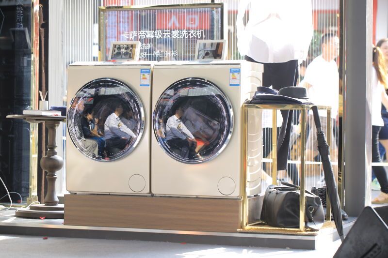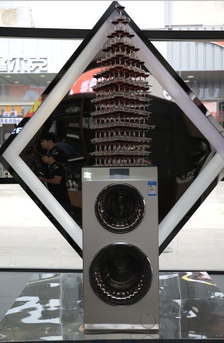 在展示区域,机身上叠置了13层香槟塔的卡萨帝双子云裳洗衣机吸引了不少用户目光。为了满足用户对分类洗护的诉求,双子云裳洗衣机推出了首创的双滚筒设计。在双筒洗的情况下依然保持机身稳定是业界难题。然而,即便是在双筒尽同时启动、离心力高达300kg的情况下,香槟塔纹丝不动。其奥秘在于卡萨帝工匠对机身动态平衡的极致追求。