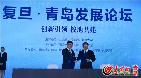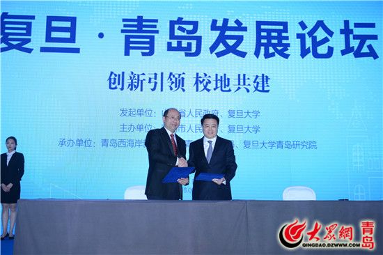 大众网青岛9月29日讯“创新引领·校地共建”……9月29日在青岛西海岸新区,首届复旦·青岛发展论坛暨复旦大学创新成果博览会盛大召开。省委副书记、省长郭树清,省委常委、市委书记李群出席论坛并致辞,中国科学院院士、复旦大学校长许宁生发表主旨演讲。论坛上,郭树清、许宁生共同为复旦大学青岛研究院揭牌。许宁生与市委副书记、市长张新起分别代表复旦大学和青岛市签署了战略合作协议。