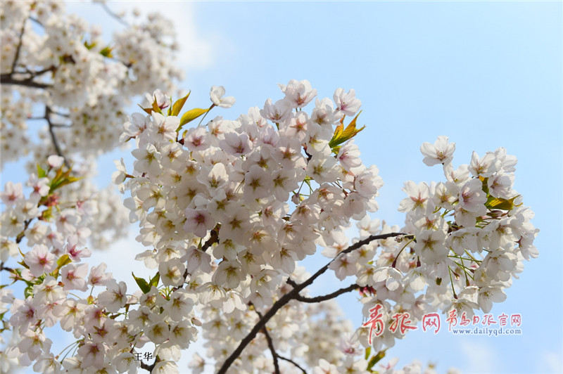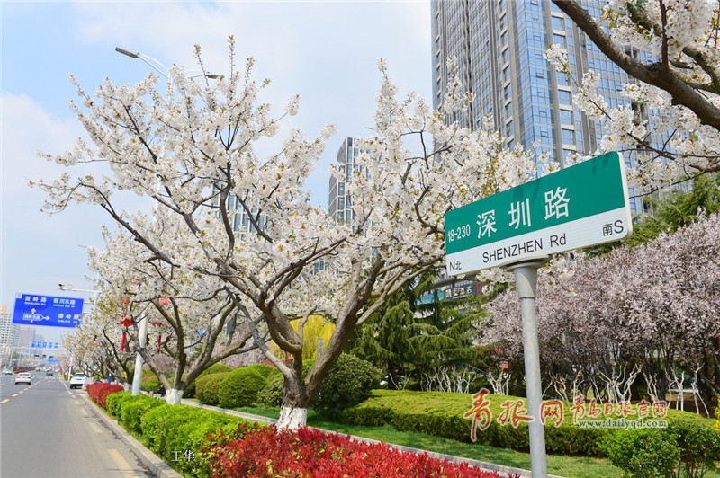 青岛日报/青岛观/青报网讯 4月10日,青岛各处樱花已进入盛花期,崂山区深圳路两边也是樱花怒放,犹如白色花海,使人沉醉。(“青岛观”摄影师 王华/摄)