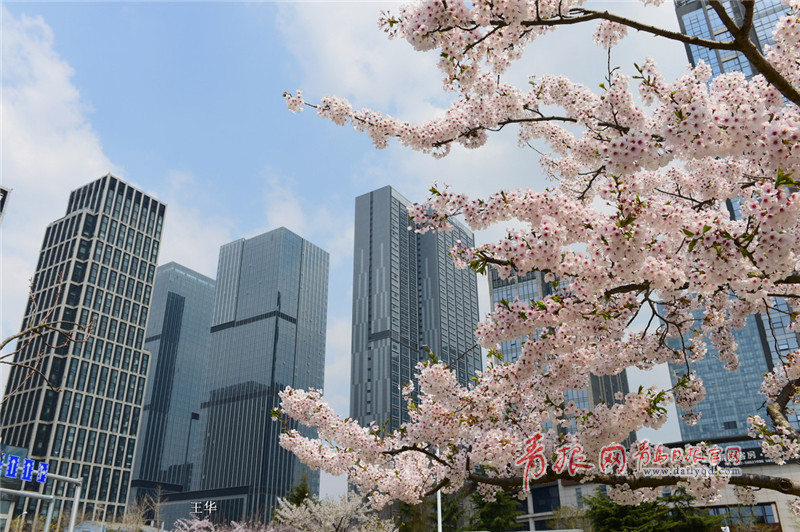 ▲金家岭金融区的高楼大厦隐约其间,尽显现代大都市春日之美。(“青岛观”摄影师 王华/摄)