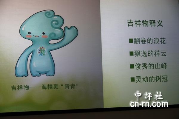 这次展览会徽为“七彩花艺”,核心图形符号采用中国古老的甲骨文字“艺”字的字体,体现2014年青岛世园会的主题“让生活走进自然”,也透过红蓝黄绿等各种颜色的运用,有如“天女散花”,呈现青岛山海相连的特殊地理环境及中国古典神话故事“七仙女下凡”。吉祥物“海精灵青青”既有代表生命摇篮、万物之灵的大海之意,也有依海而建、凭海而兴的中国历史文化名城青岛之名。