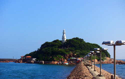小青岛因其形状如同一把古琴,故又有“琴岛”之称。位于栈桥东南海面约1公里,中间有长堤与陆地相通,面积0.012平方公里,海拔17米,距东侧海岸720米。青岛就是由它而命名的。小青岛上耸立着一座白塔,高15.5米,是轮船航行的标帜。夜幕降临,塔光辉映波光之上,被称为“琴屿飘灯”。