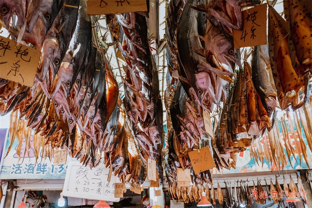 1米长的刀鱼 ,晒干后烤着吃,那叫一个鲜美;半米长的鲈鱼,鲜活的时候就开始加工晒干,蒸起来美味不可多得;此外面包鱼、鲅鱼、 蛤蜊肉 、海米等同样人气满满。