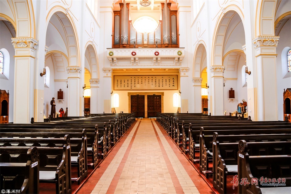 青岛天主教圣弥厄尔大教堂于1932年破土动工,由德国设计师毕娄哈依据哥德式和罗马式建筑风格而设计,1934年10月落成,历时两年半多。拟建教堂应高百米,适逢二战爆发,希特勒严禁德国本土资金外流,该教堂不得不修改图纸,即建成现在规模。