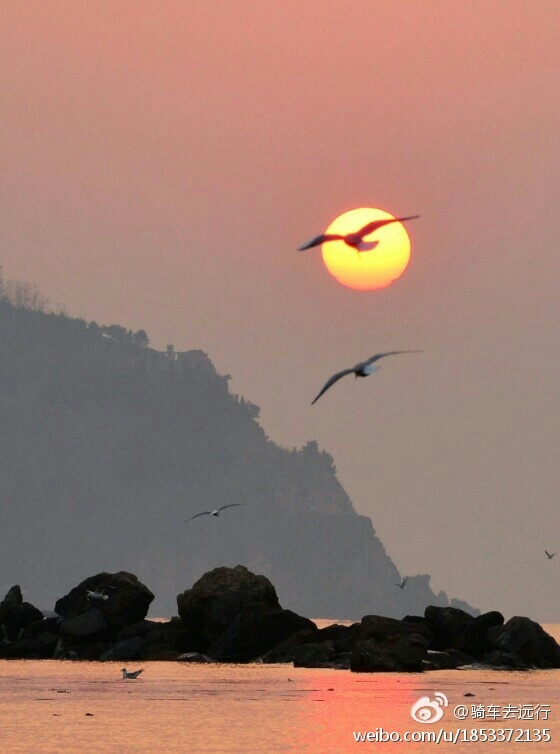阳春三月,石老人再现日出盛景。太阳升起时,海面被红色的日光环绕,渔船从初升的太阳下经过,鸥鸟围绕太阳盘旋。从清晨熹微的曙光到朝霞漫天,石老人海上日出总是带给人们带来温暖和希望。
