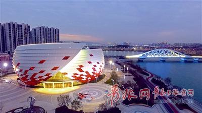 中央智力岛濒临一片河水,建筑的亮化与河水相连相映,颇有“疏影横斜水清浅,暗香浮动月黄昏”的意境,形成湖光倒影的美丽景色。观景点:隔河观赏。