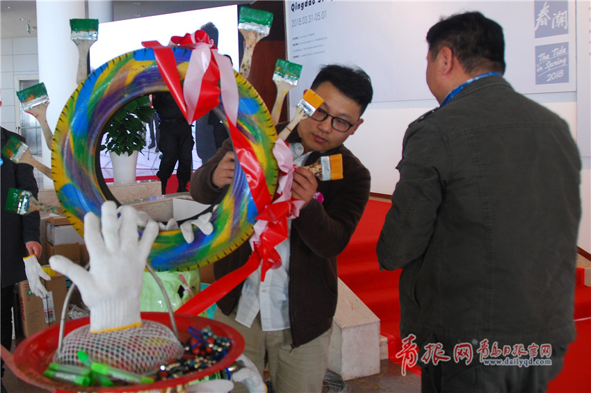 此次展览由青岛市规划局和中国雕塑院主办,市城乡规划展示中心、中国雕塑院青岛分院、市雕塑家协会、市美术家协会雕塑艺术委员会承办。同时,以隋建国为代表青岛籍艺术家对于“双年展”的推出也给予了具体建议与支持。上周六展览正式开启前,部分参展艺术家和驻青高校艺术专业学生还共同完成了利用废旧物品的即兴创作。